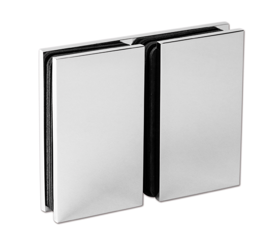 180 Degree Glass to Glass Connector for fixed partitions, Chrome plated. suitable for 8,10,12mm Glass thickness.