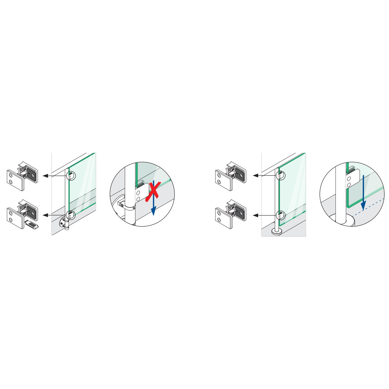 12mm hole recommended if using Safety Pin. When using the support shoe place the clamp at the bottom of the glass for additional support, this can be removed to position the top or bottom clamp in an alternative location.